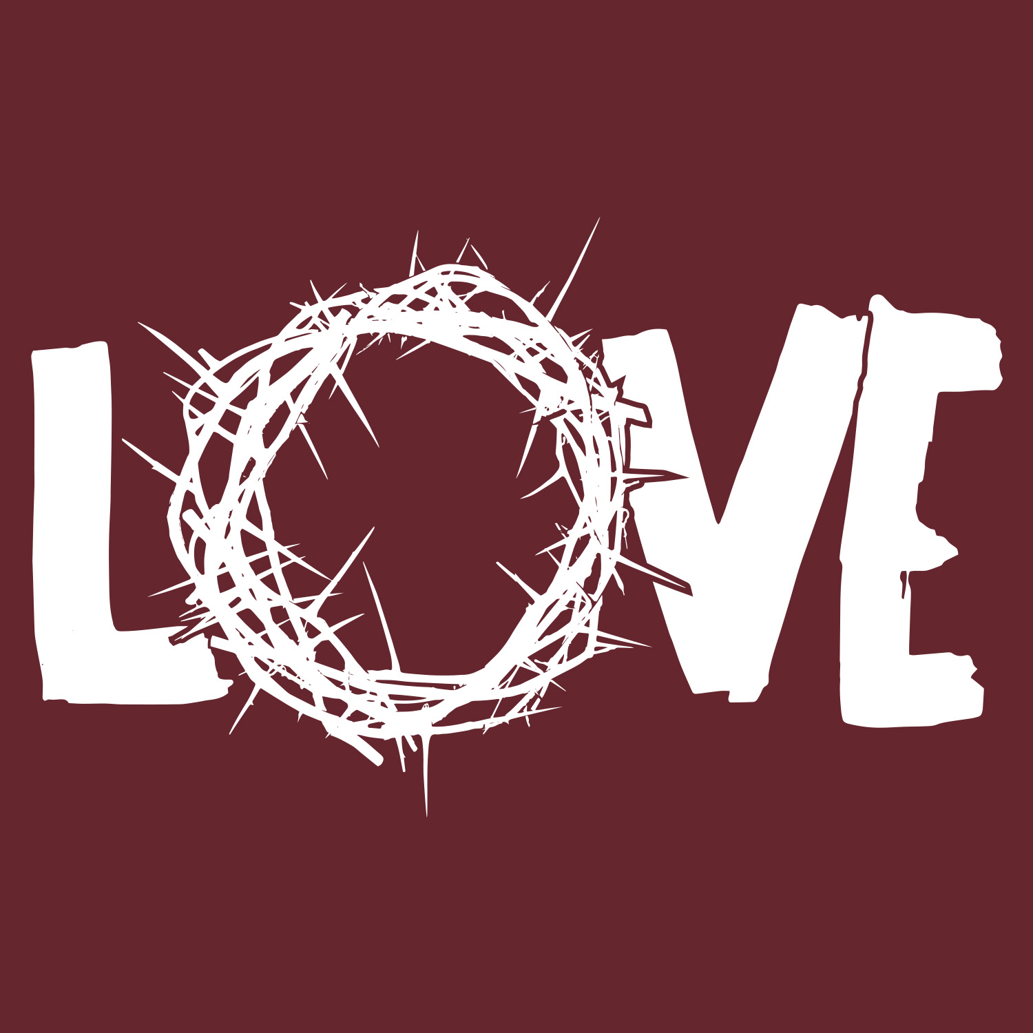 Auf diesem klassischen Girlie-Shirt ist auf der Brust das Wort "Love" gedruckt. Das O ist durch eine Dornenkrone erstezt.