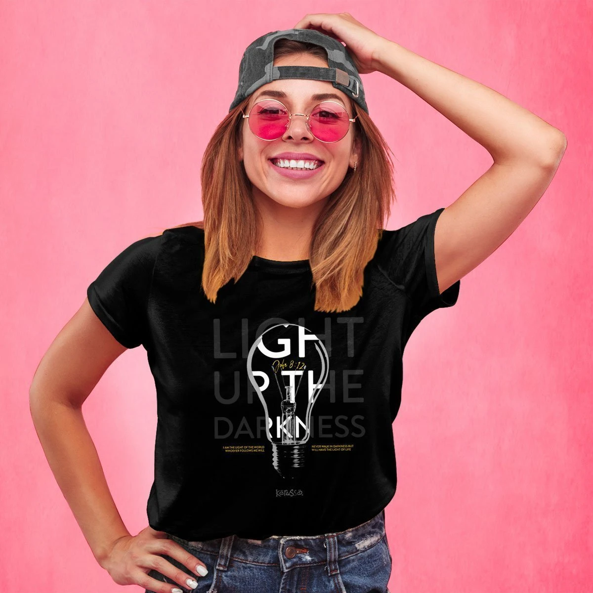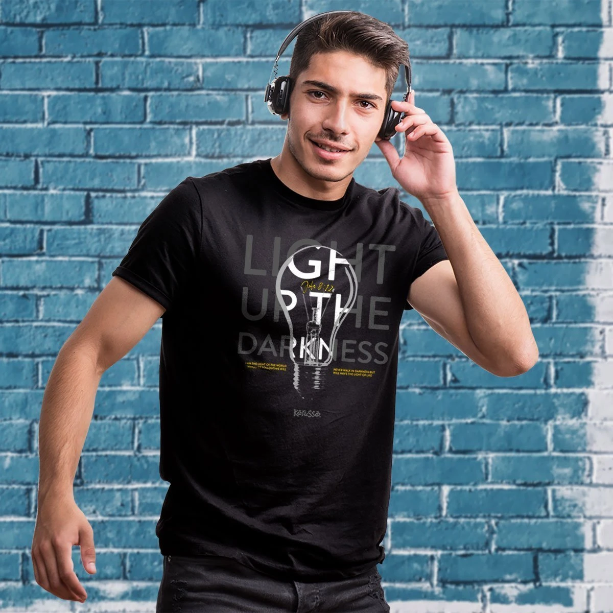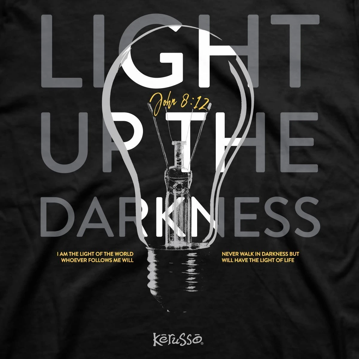 Jesus bezeichnet sich selbst als das Licht der Welt. Mit seinem Tod am Kreuz und seiner Auferstehen steht uns der Weg zur Ewigkeit bei Gott offen. Aus der Finsternis des Verlorenseins, werden in eine strahlende Zukunft im Himmel errettet. Mit deinem neuen "Light Up Your World" Kerusso® T-Shirt kannst du im Alltag leuchten und diese guten Botschaft ausstrahlen.