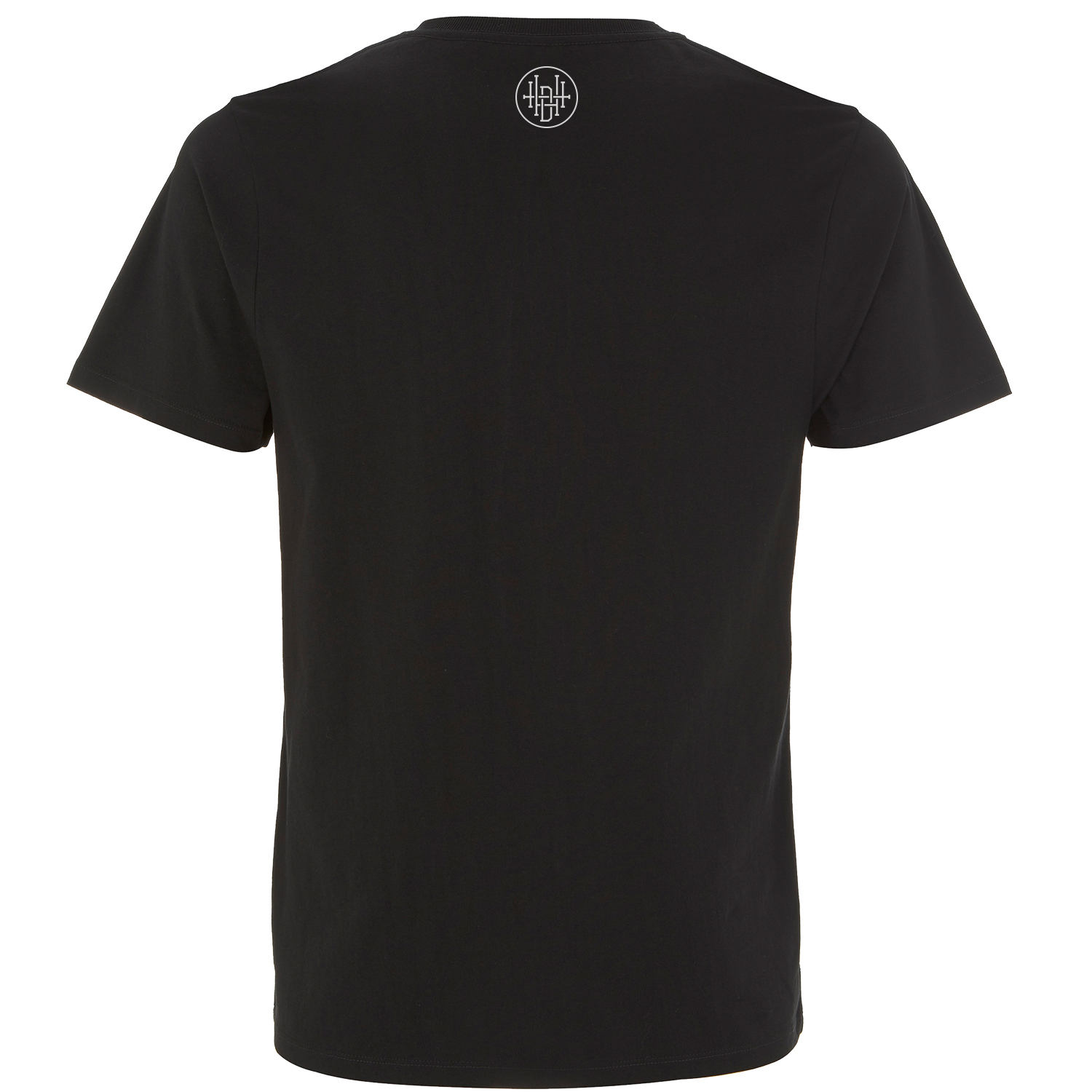 Auf diesem klassischen T-Shirt mit Rundhals ist auf der Vorderseite eine Hälfte einer Dornenkrone zu sehen, die sich in einem Blutfleck abzeichnet.