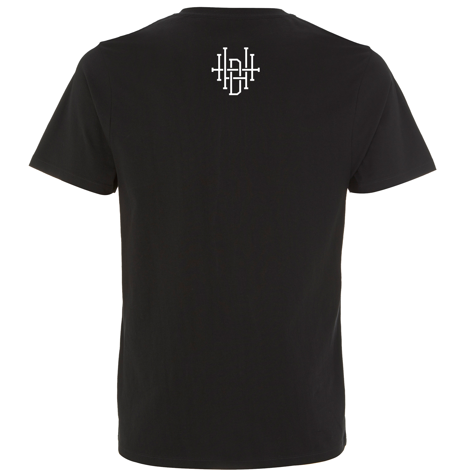 Auf diesem klassischen T-Shirt ist auf der Brust ein menschliches Herz zu sehen und darüber ein Banner mit dem Wort "Revolution". Dabei sind die Buchstaben EVOL hervorgehoben. Diese ergeben rückwärts gelesen das Wort LOVE (Liebe).