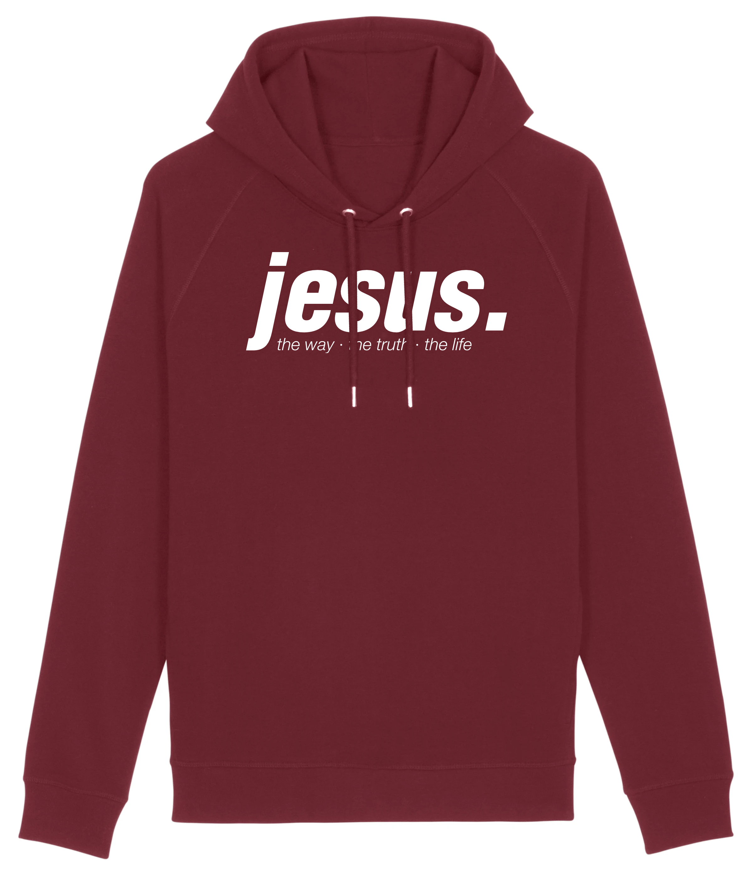 Auf diesem klassischen Hoodie/Kapuzenpullover ist auf der Brust der Schriftzug „jesus.“ in weiß zu sehen.