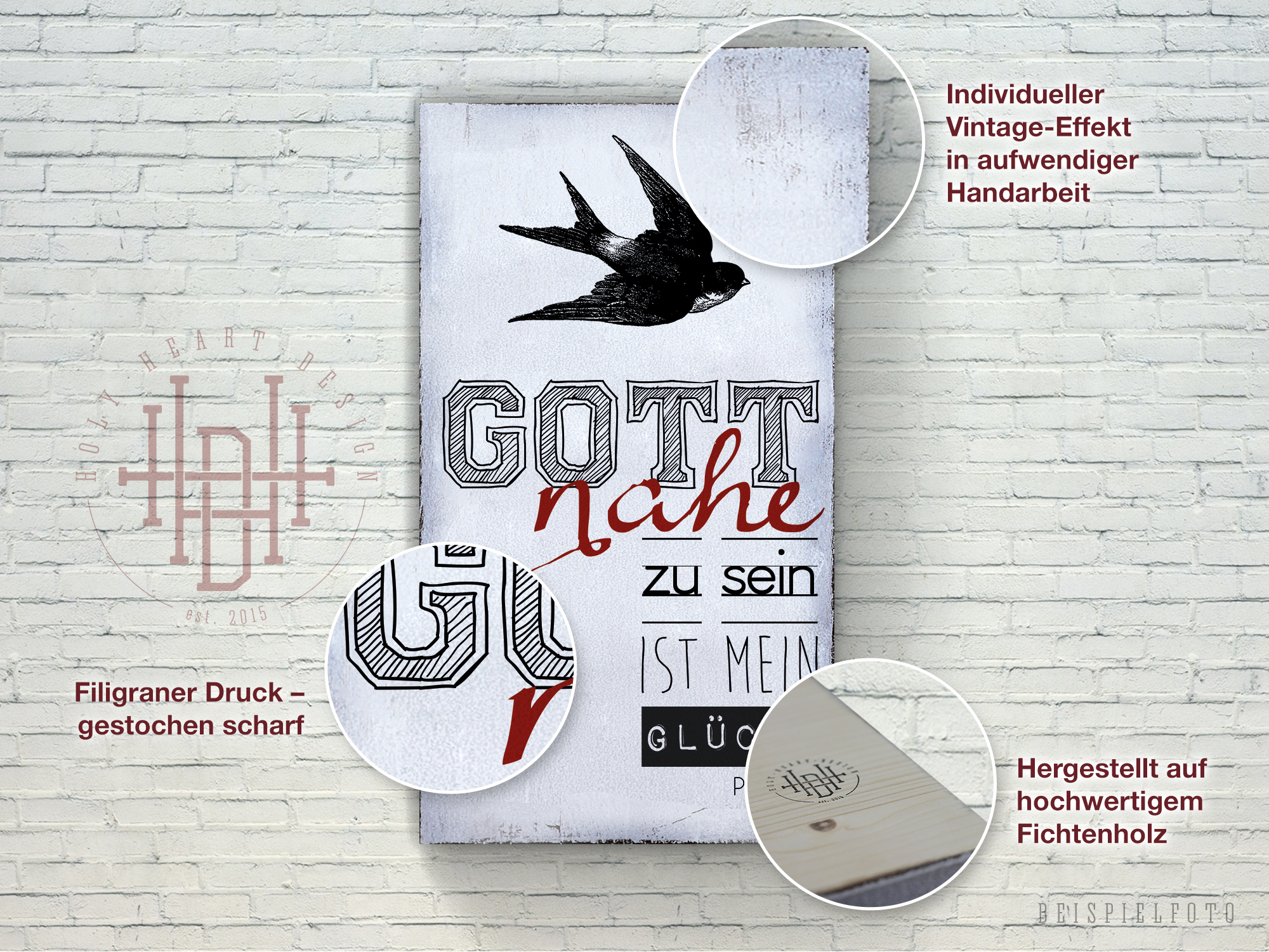 Gott nahe zu sein, ist mein Glück (klein)– Vintage Wandbild (Holz) mit Bibelvers